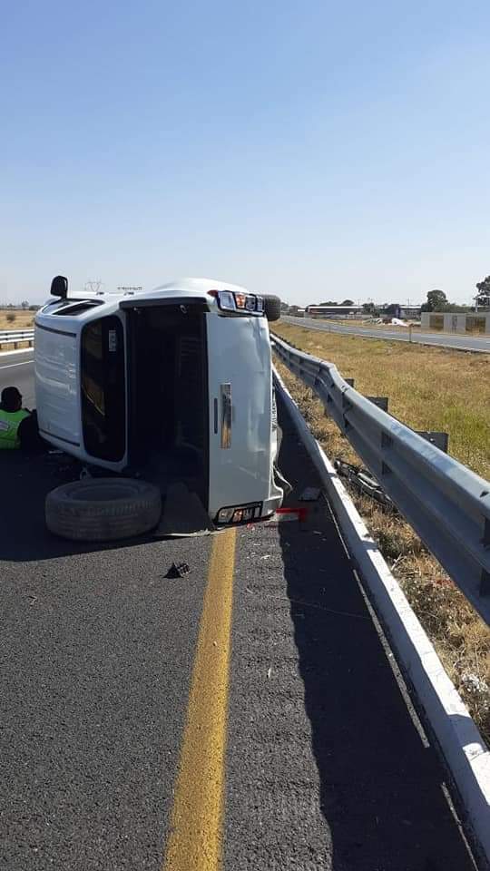 Villagran Gto. – Una camioneta blanca, doble cabina de la marca Mitzubishi, con reporte de robo fue abandonada, volcada, sobre la autopista Villagrán-Salamanca.