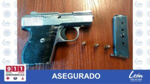 León, Guanajuato.- Un hombre armado fue detenido por agentes de Tránsito Municipal; se le aseguró un arma de fuego tipo escuadra, con un cargador con 3 cartuchos.