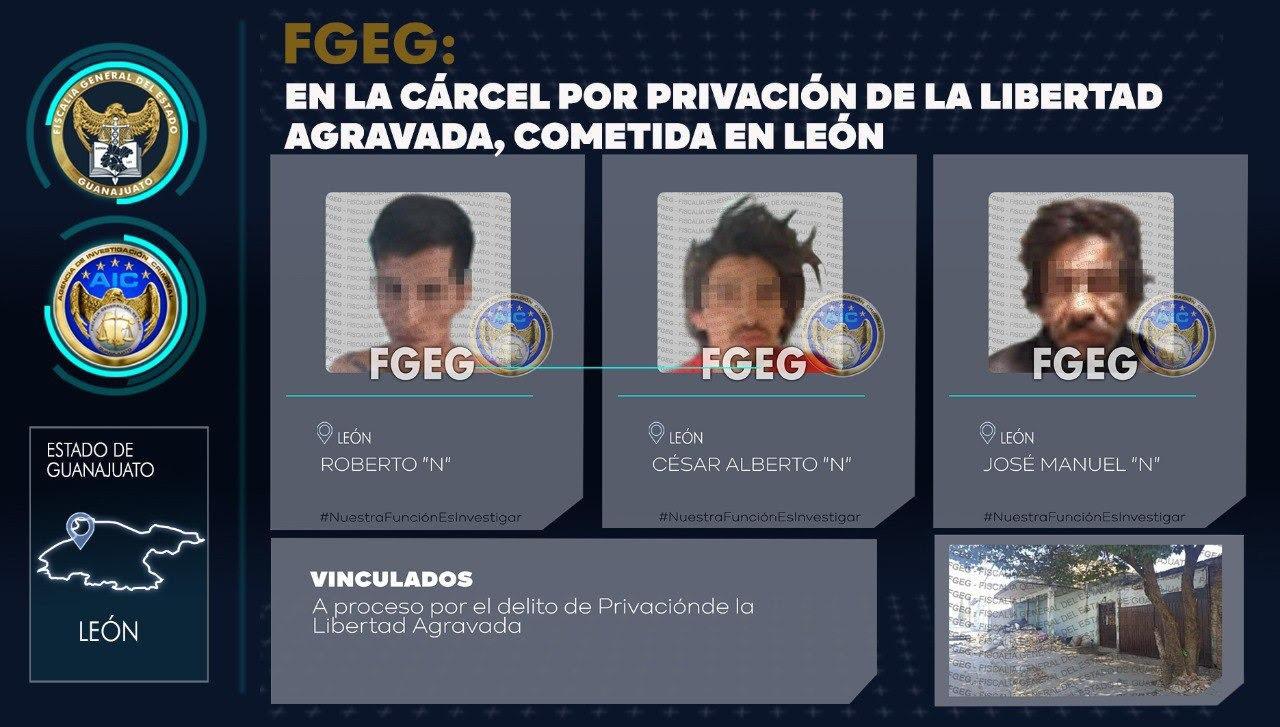 – El Agente del Ministerio Público aportó los elementos de prueba que permitieron a un juez de control vincular a proceso penal a ROBERTO “N”, CÉSAR ALBERTO “N” y JOSÉ MANUEL “N”, por su presunta participación en la privación de la libertad de un hombre, el 11 de marzo de este año, en la ciudad de León*.