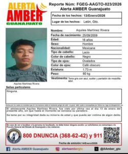 Aquiles Martínez Rivera, de 16 años fue visto por última vez el 13 enero en Leon.