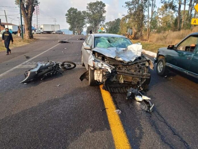 Morelia Mich. – La mañana de este lunes se registró un accidente en la carretera Morelia-Quiroga frente a la clínica 84 del IMSS de la población de Tacícuaro, donde una mujer perdió la vida y un hombre resultó lesionado.