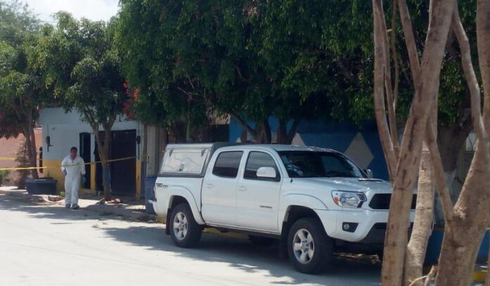 Al acudir elementos municipales y paramédicos a una vivienda con la puerta negra dañada y fachada en color amarillo y verde agua ubicada en la calle Cuauhtémoc, encontraron a una mujer sin vida con heridas de bala mientras que un hombre de entre 45 y 50 años fue llevado a un centro médico dónde falleció.
