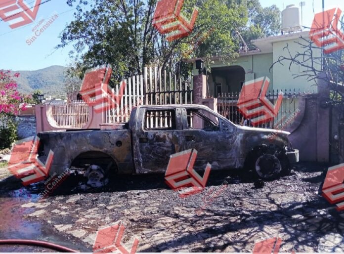 Elementos de los tres niveles de gobierno, atendieron el reporte y en el lugar de los hechos, encontraron una vivienda con impactos de arma de fuego en su fachada; frente al inmueble una camioneta completamente calcinada.