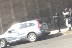 Al parecer los agresores huyeron corriendo y abandonarin la camioneta, una Honda de color gris de modelo reciente y con reporte de robo.