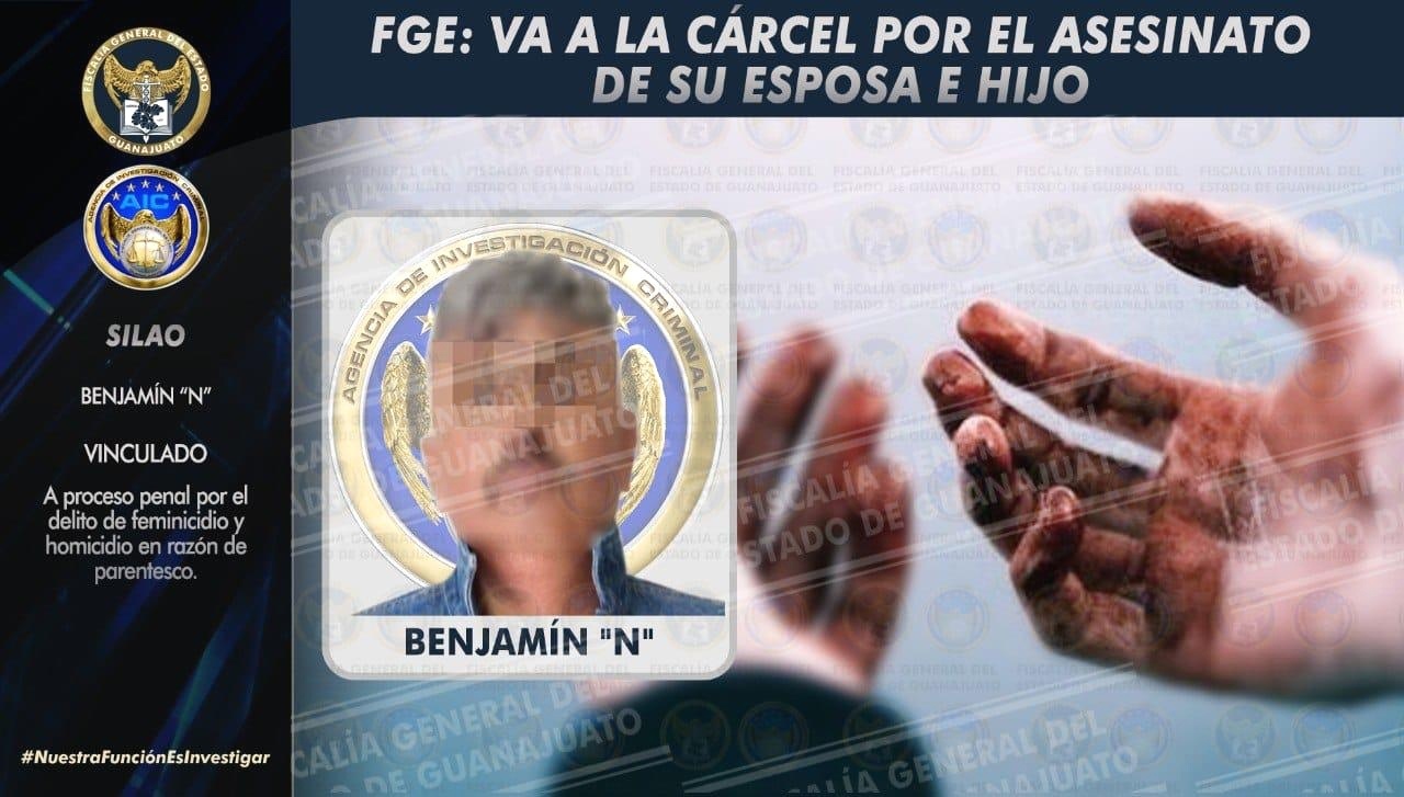 Silao, Gto. 29 de enero 2022.- Una mujer y su hijo fueron brutalmente asesinados por BENJAMÍN “N” en el interior de su domicilio, la madrugada del pasado 21 de enero en la comunidad de Chichimequillas; el inculpado era esposo y padre de las víctimas, cuyos cuerpos fueron trasladados y abandonados en una zona cerril de la comunidad Yerbabuena, en Silao.