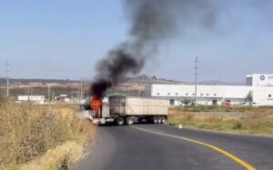 Pénjamo, Gto.- Durante la mañana de este lunes 17 de noviembre, por lo menos dos bloqueos con trailers incendiados movilizaron a las autoridades de seguridad en Pénjamo Guanajuato.