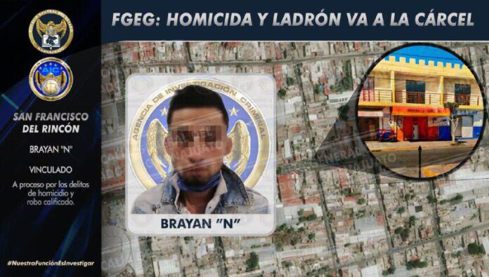 San Francisco del Rincón, Gto., 26 de enero de 2022.- Un sujeto fue detenido por elementos de la Unidad especializada en Mandamientos Judiciales de la Fiscalía General del Estado, acusado de privar de la vida a un joven de 23 años, recién llegado a la ciudad, para robarle sus pertenencias. En la investigación realizada por el Ministerio Público, la Agencia de Investigación Criminal y Servicios Periciales, se acreditó la probable intervención del detenido y se le formuló imputación por los delitos de homicidio simple, en calidad de autor material.