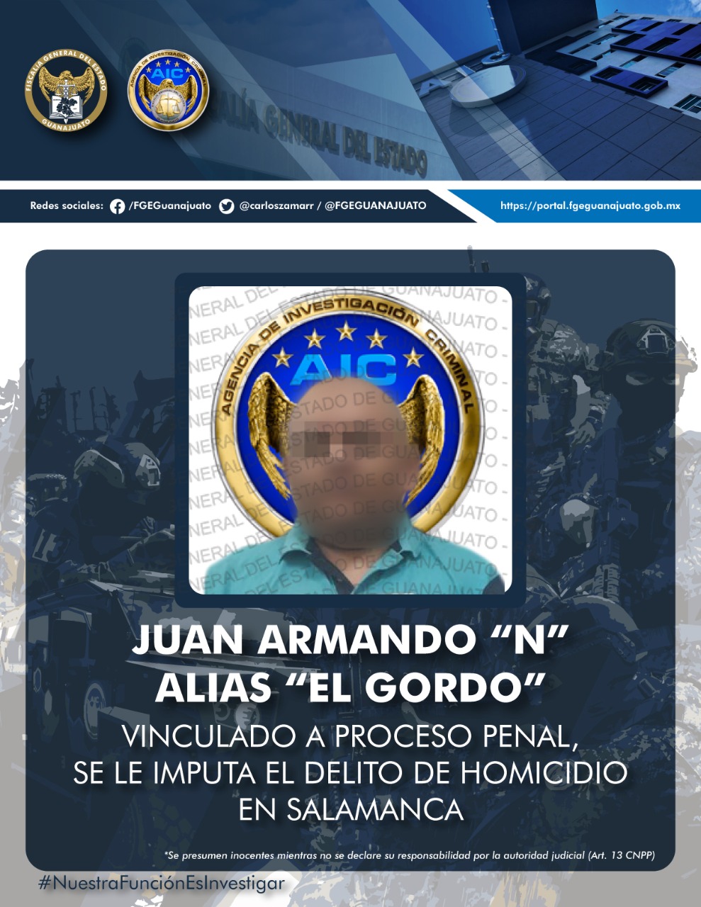 Al realizar actos de investigación por estos hechos, la Fiscalía General del Estado identificó al presunto responsable quien fue llevado ante un Juez y vinculado a proceso penal por homicidio calificado, con medida preventiva oficiosa.