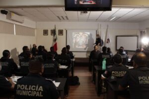 La Detective norteamericana dijo que como primer respondiente, en un asunto criminal, los policías municipales son el primer eslabón de una cadena y todo lo que puedan recopilar de indicios, información de primera mano, así como el resguardo de la escena del crimen y las evidencias, “es determinante para un proceso judicial, en el que van a intervenir otros actores, como pueden ser los fiscales y los jueces”.