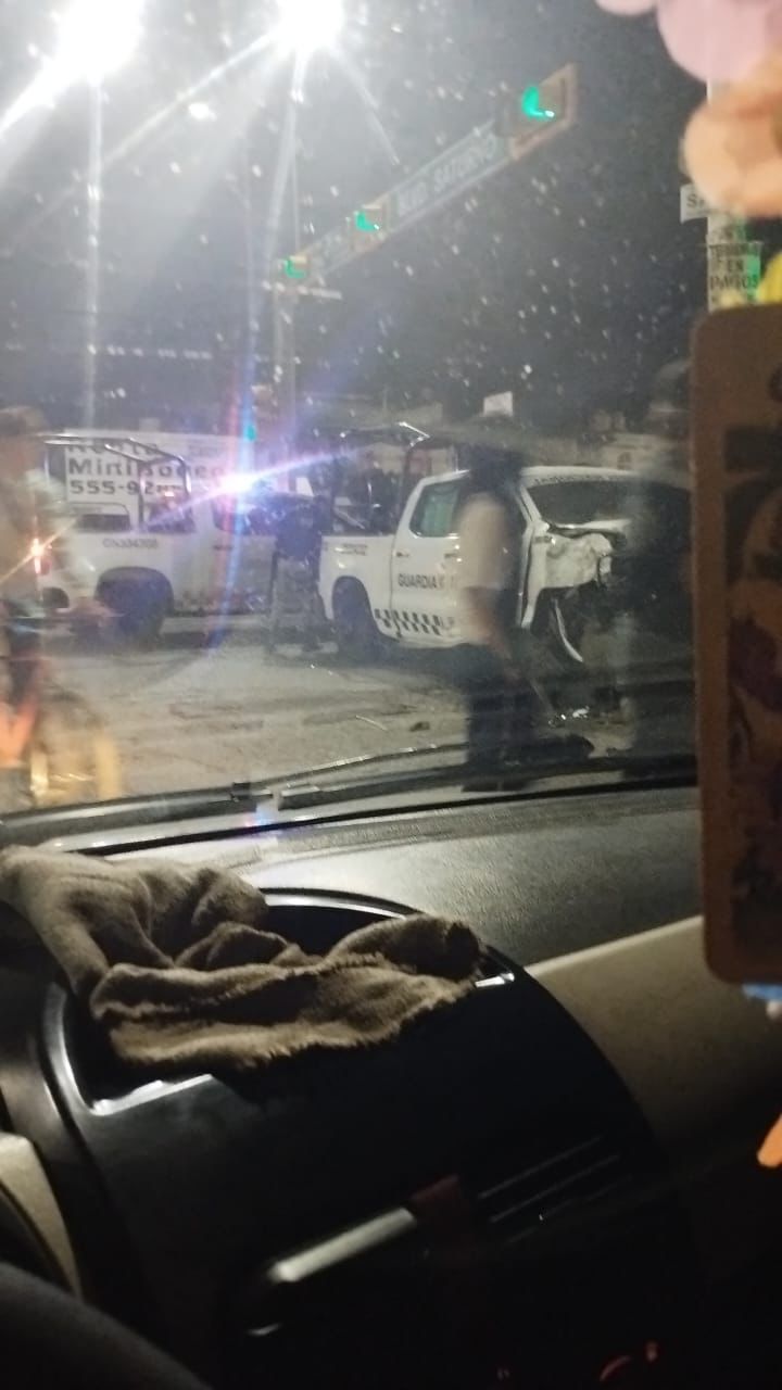 Choque entre una unidad de la Guardia Nacional y un vehículo particular, dejo un saldo de cuatro elementos y cuatro civiles lesionados, en León.