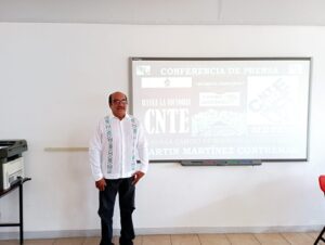 Salamanca.- El Profesor Martín Martínez Contreras anunció en rueda de prensa que encabezará la planilla de la Coordinadora Nacional de Trabajadores de la Educación (CNTE) en Guanajuato en la elección del próximo 14 de julio para competir por la dirigencia del comité de la sección 13 del Sindicato Nacional de Trabajadores de la Educación (SNTE). El candidato mencionó que este proceso electoral es histórico al ser la primera ocasión que los trabajadores de la educación tienen la oportunidad de elegir a sus representantes sindicales de manera directa, libre e instrasferible.