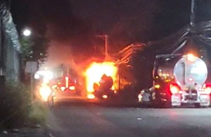 Cobro de piso a traileros en puerta 5 de Pemex, motivo por el cual incendiaron una unidad el pasado jueves.