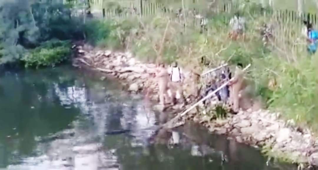 Autoridades de la Fiscalía General de Justicia se movilizaron para realizar el levantamiento del cadáver, en tanto los bomberos lograron capturar el enorme cocodrilo que rondaba los tres metros de longitud.