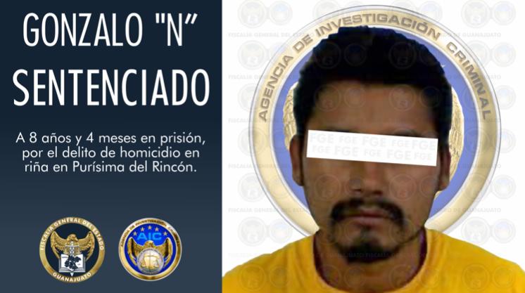 Purísima del Rincón, Gto. 15 de diciembre de 2020.- Tras las pruebas contundentes vertidas por el Agente del Ministerio Público especializado en litigación de la Fiscalía General del Estado durante un juicio, Gonzalo “N” alias “El Ratón” ha sido condenado a 8 años y 4 meses en prisión, al ser encontrado culpable del delito de homicidio en Riña en agravio de un hombre en la comunidad Pradera de Soto.
