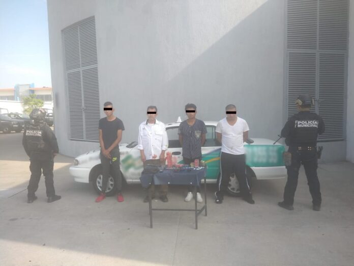 Motivo por el cual fue detenido Enrique Leonardo ‘N’ de 36 años, con domicilio en la colonia Hacienda Don Gu; Martín ‘N’ de 51 años con domicilio en la colonia Santa Rita; José Fernando ‘N’ de 22 años, con domicilio en Hacienda Natura y un menor de 17 años.