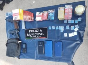 Además se les encontró en posesión de un arma de fuego y una réplica, varias dosis de diferentes tipos de drogas y se logró recuperar la mercancía presuntamente robada.