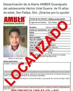 La localización se realizó tras cuatro días de la activación de la Alerta Amber, que fue reportado como desaparecido luego de salir de su domicilio ubicado en San Felipe, el pasado 29 de noviembre.
