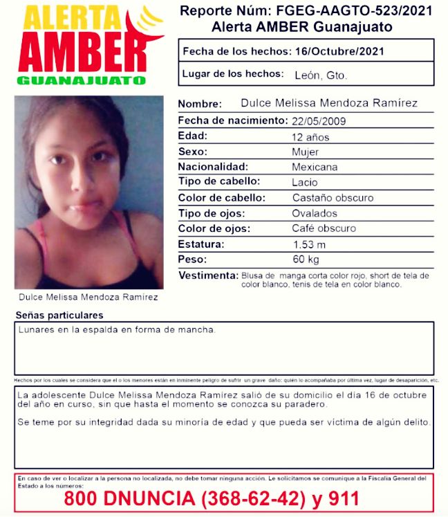 Luego de varios días de no saber de su hija la madre de Dulce acudió al Ministerio Público para levantar la denuncia correspondiente por lo que se emitió la Alerta Amber.