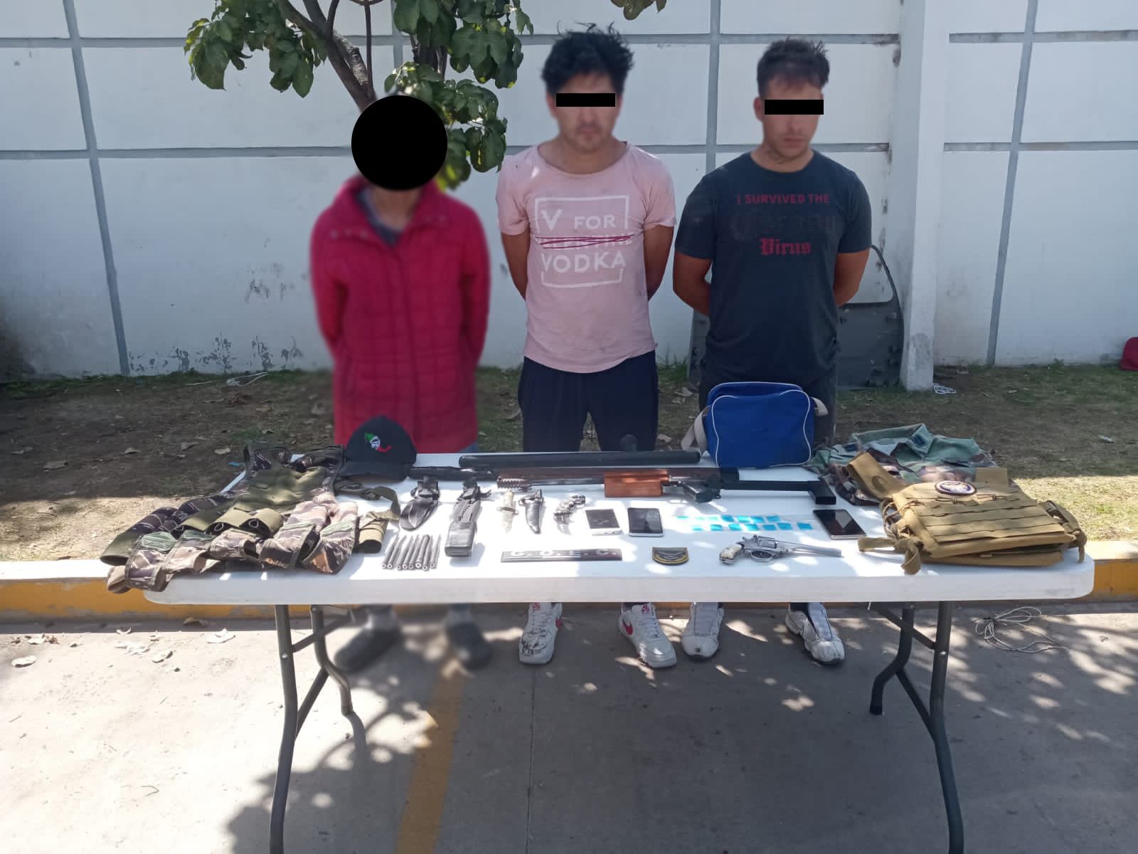 Al pedirles que se detuvieran y revisar una camioneta Ford Explorer, modelo 1998, color verde, y una motocicleta Italika, modelo 2022, color verde, se supo que los tres tripulantes llevaban consigo diversos objetos constitutivos de delito.