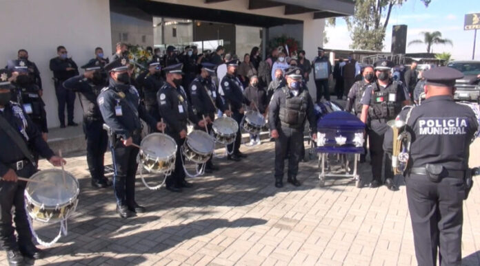 León, Gto.- Familiares y autoridades de la ciudad de León rindieron un homenaje y despidieron a uno, de los dos policías asesinados el fin de semana.