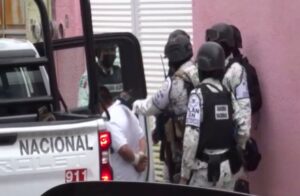 Los hechos se registraron minutos después de las tres de la tarde cuando elementos de la Guardia Nacional que realizaban su rondín de vigilancia por la zona norte de la ciudad tuvieron a la vista a un hombre quien al ver a los elementos federales corrió y se metió a un domicilio de la calle Mar Mediterraneo de Granada para intentar evadir a los elementos de la GN .