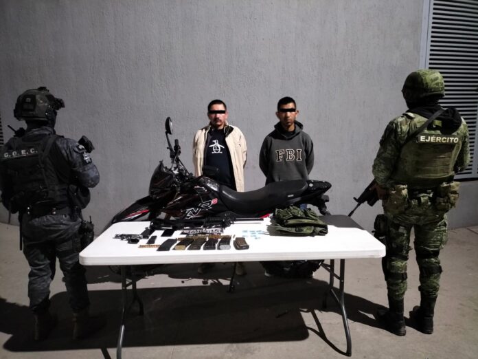 Celaya GTO- La madrugada de este miércoles dos sujetos fueron asegurados con armas y presunta droga en la colonia Los Olivos.