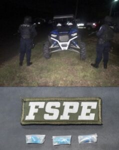 En el lugar se detuvo a quien dijo llamarse Omar ‘N’ de 19 años de edad, vecino de este municipio, quien portaba consigo un arma de fuego tipo corta, marca DB MINE, calibre .9 mm, así como un cargador color negro, 15 cartuchos útiles del mismo calibre y tres dosis de una sustancia granulada y de color azul, al parecer cristal.