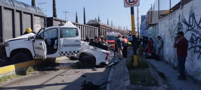Dos muertos y cuatro heridos fue el saldo de un accidente de un vehículo de la Guardia Nacional con el tren, en Celaya.