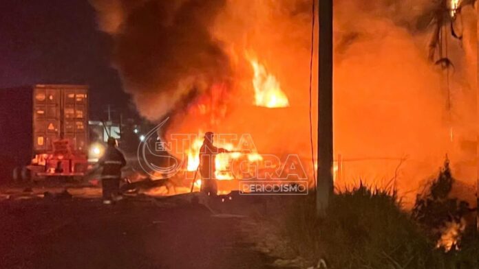 El accidente donde se vieron involucrados dos tráileres de carga y una camioneta particular, las dos unidades de carga se incendiaron y las llamas las consumieron completamente .