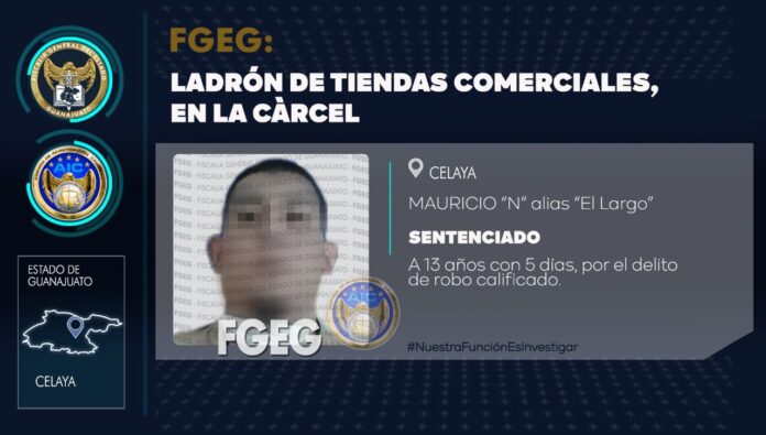 Celaya, Gto., 3 de julio de 2022.- Un escurridizo ladrón de tiendas de conveniencia fue sentenciado a 13 años con 5 días, por el delito de robo calificado. El delincuente aceptó los elementos probatorios presentados por el Ministerio Público y aceptó reparar el daño de su conducta delictiva.