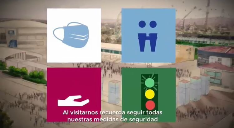 ● A través del sistema de voceo general se estará anunciando de forma periódica el aforo general del recinto, las medidas obligatorias para los asistentes y los protocolos a seguir en caso de cualquier eventualidad.