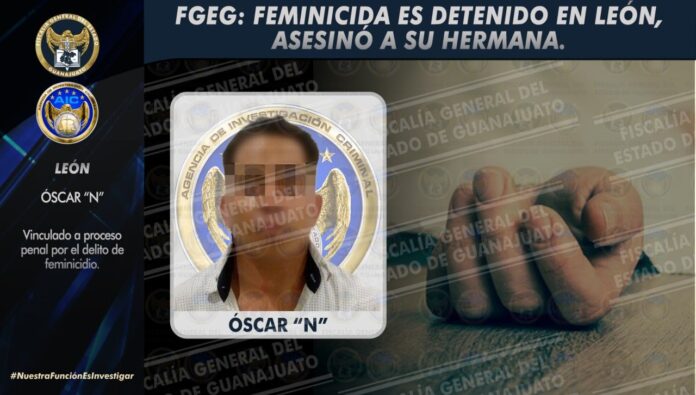 León, Gto. 07 de diciembre de 2021.- Un hombre conocido como “El Quinientos” perdió los estribos y al calor de una discusión sacó un arma de fuego y le disparó a su hermana menor, arrebatándole la vida en su domicilio. El inculpado de 29 años de edad fue detenido por la Fiscalía General del Estado y enfrenta cargos por feminicidio.