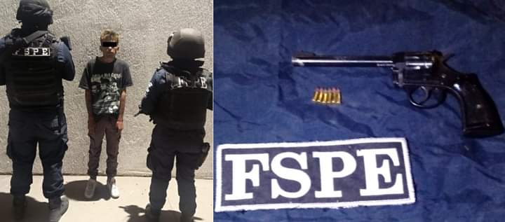 Tras una breve persecución, el masculino fue detenido quien tras aplicarle una revisión preventiva, le fue encontrada un arma de fuego tipo revólver, calibre .22, así como seis cartuchos completos del mismo calibre.