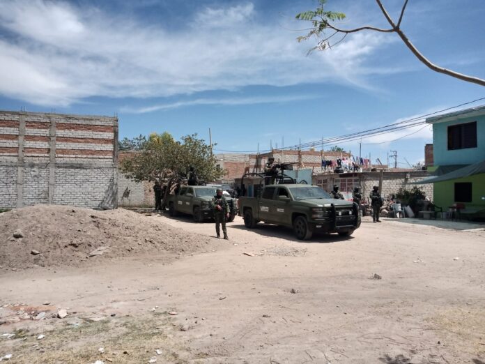 Elementos de los tres órdenes de gobierno, realizan cateo en una vivienda de la colonia Arboledas de Camargo, Celaya.