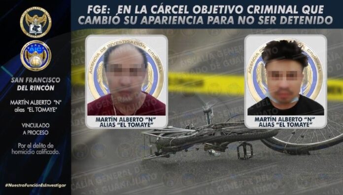 San Francisco del Rincón, Gto. MARTÍN ALBERTO “N”*, alias *“El Tomaye”* o “Tumayo” fue capturado y un agente del Ministerio Público le formuló cargos penales obteniendo vinculación a proceso, por su probable responsabilidad en la comisión del delito de homicidio calificado cometido en esta ciudad.