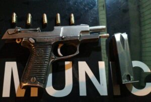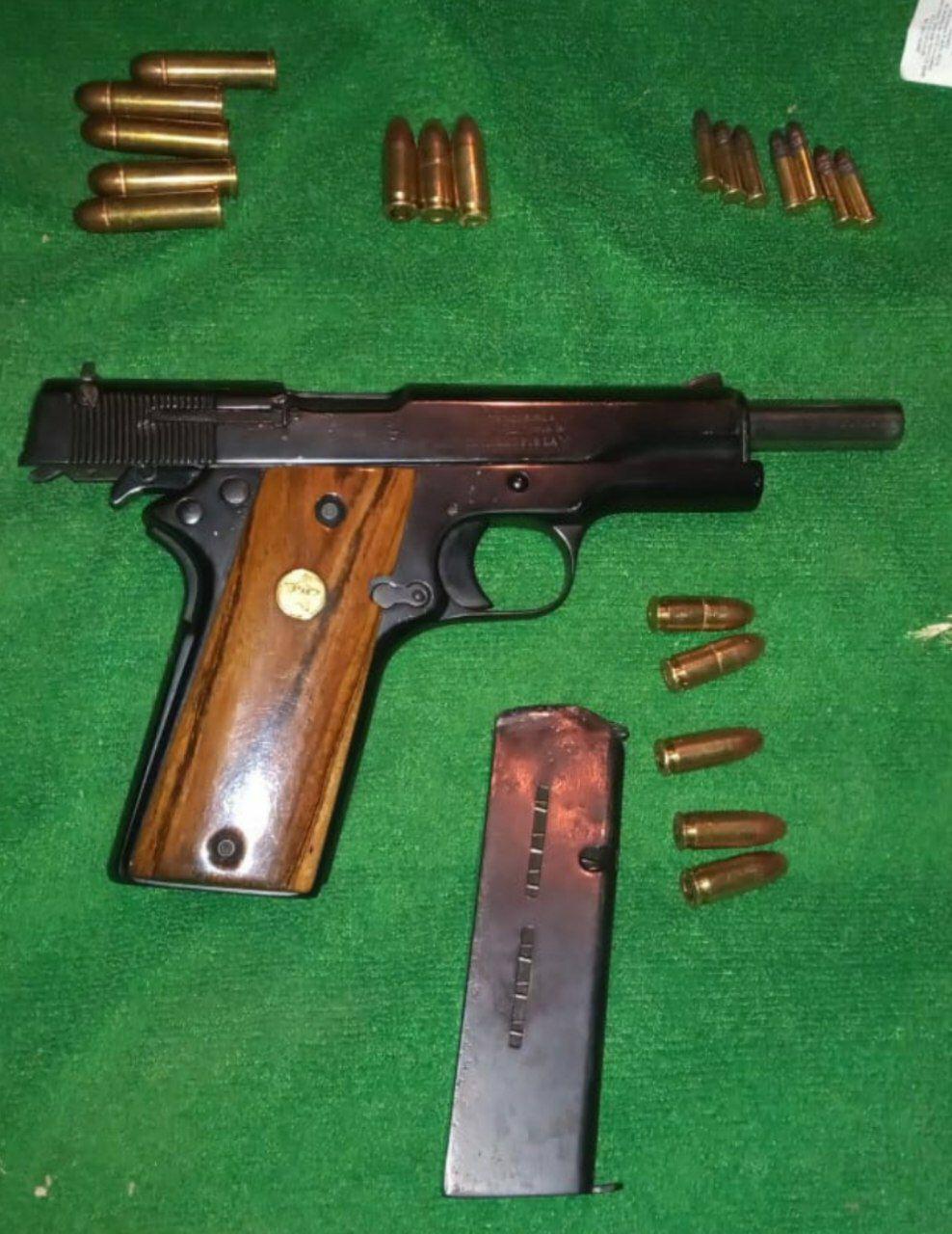 Al ser revisados los tripulantes del vehículo se les encontró un arma de fuego tipo escuadra con tres cartuchos.