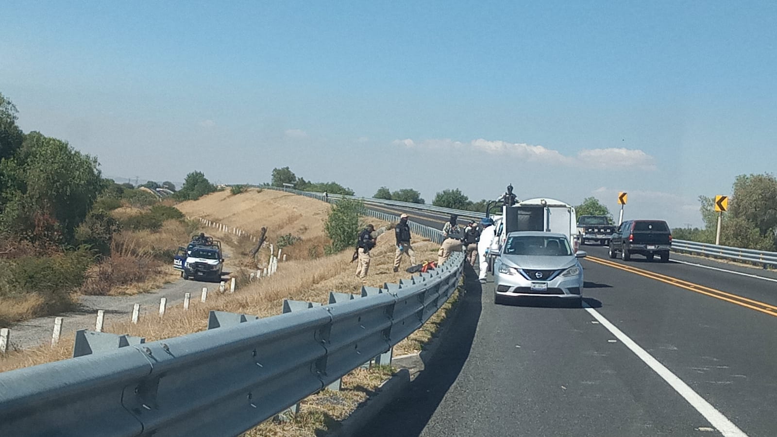 El reporte de una persona sin vida en el libramiento Norponiente Celaya-San Miguel de Allende generó desplazamiento policiaco desde la noche del marte, sin embargo fue hasta la mañana de este miércoles que elementos de Guardia Nacional dieron con el hallazgo en los límites de Celaya y Apaseo el Grande.