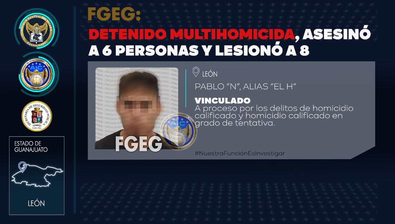 ES DETENIDO Y VINCULADO A PROCESO PENAL “EL H”, PRESUNTO MULTIHOMICIDA QUE DISPARÓ CONTRA LOS ASISTENTES DE UN BAUTIZO, EL PASADO 10 DE JULIO, EN LEÓN.