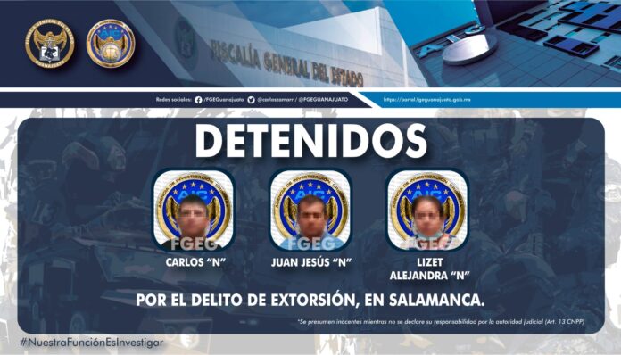 FGE detiene a presuntos extorsionadores en Salamanca.