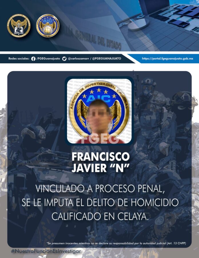 – En Celaya, la Unidad de Homicidios de la FGE esclareció el crimen, al detener al probable inculpado y obtener su vinculación a proceso penal.
