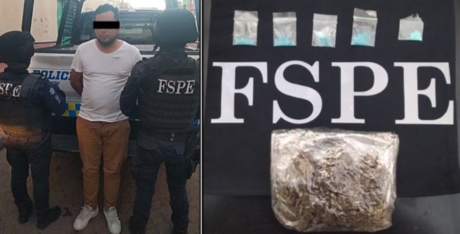 FSPE aseguran 20 dosis de droga, cristal y marihuana y detienen a dos sujetos.