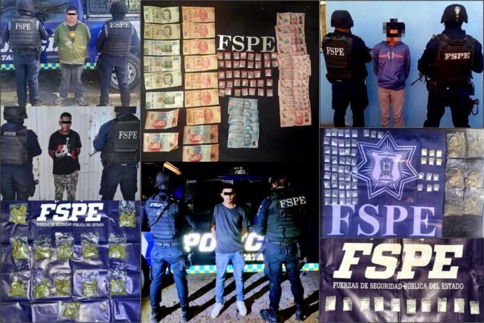 Guanajuato, Gto.-Aseguran elementos de las Fuerzas de Seguridad Pública del Estado (#FSPE), en distintos hechos, a tres sujetos en la ciudad de Irapuato y a uno más en el municipio de Cuerámaro; todos ellos en posesión de diversas drogas.