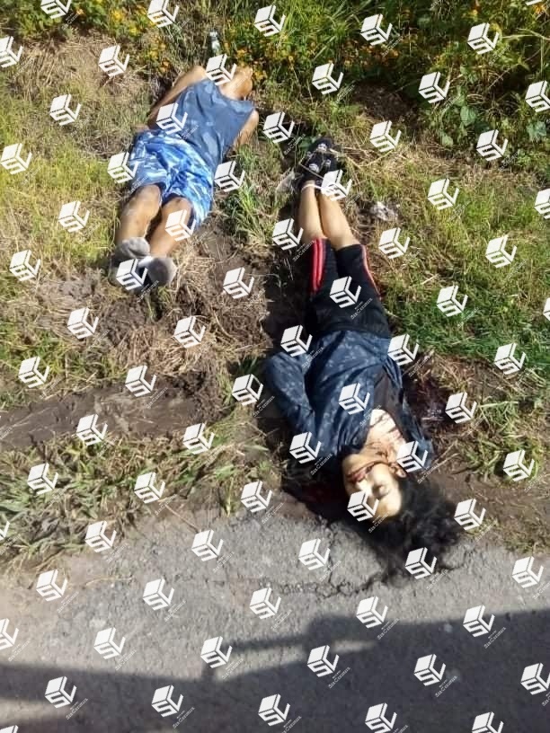Alrededor de las 4 de la tarde habitantes de la comunidad notaron que entre la hierba crecida a la entrada de su comunidad estaban los cadáveres de dos hombres atados de pies y manos y con heridas de bala.