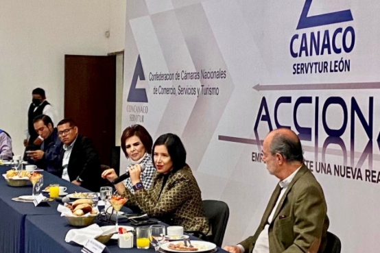 León, Gto.- La Secretaria Ejecutiva del Sistema Estatal de Seguridad Pública, Sophia Huett López, participó en la sesión del Consejo Directivo y Comité Ejecutivo de la Confederación de Cámaras Nacionales de Comercio, Servicios y Turismo de León.