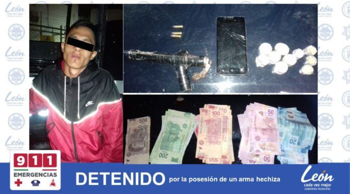 León, Guanajuato.- Por la posesión de un arma hechiza, la Secretaría de Seguridad Pública a través de la Policía Municipal detuvo a un hombre en la colonia Valle de Jerez.