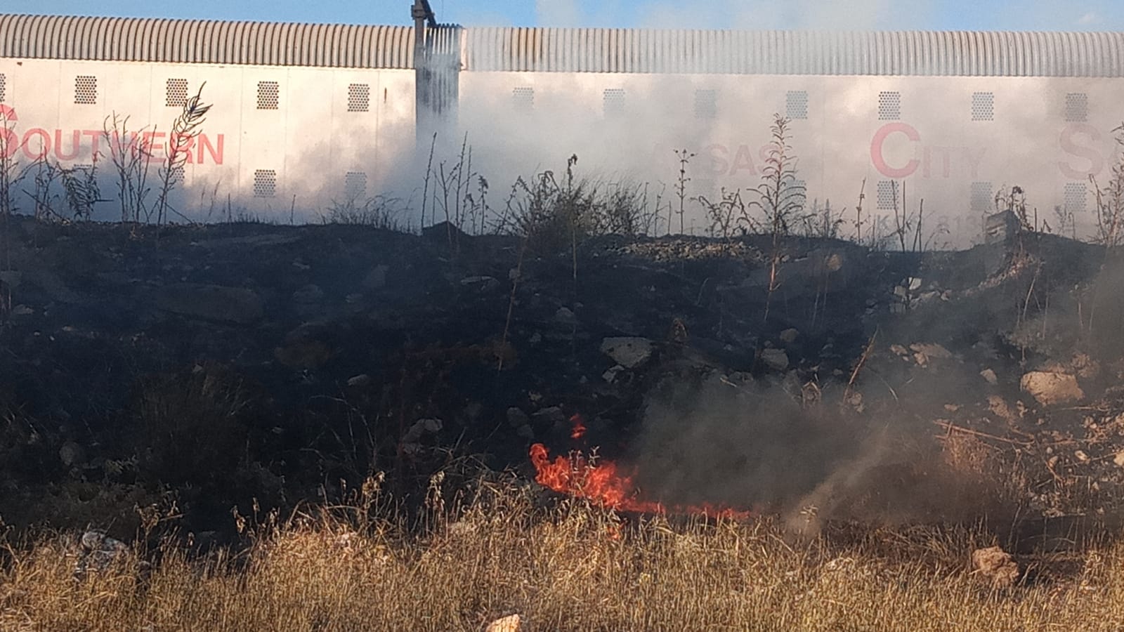 Llamaradas de más de un metro de altura se registraron a un costado de la calle Héroes de Nacozari esquina Francisco Primo, hecho que fue reportado a las autoridades poco después de las 3:00 de la tarde de este martes .