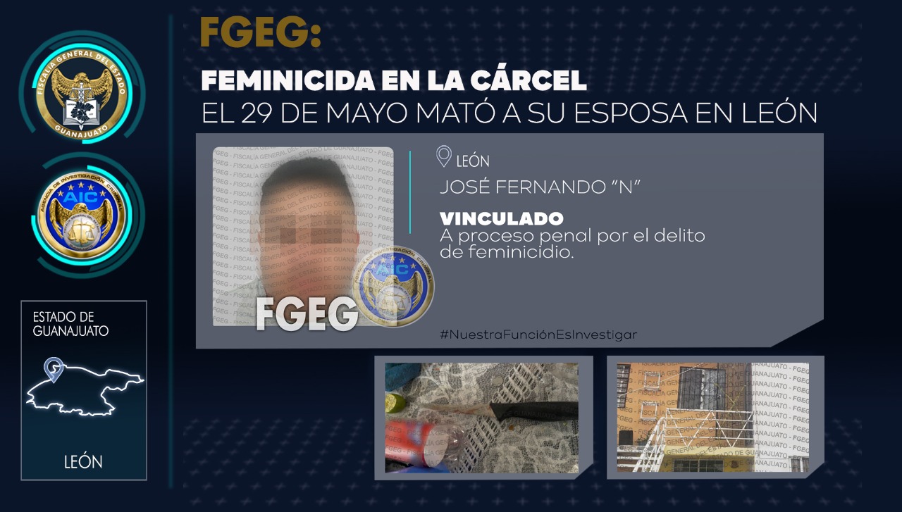 JOSÉ FERNANDO “N” ha sido vinculado a proceso penal por el delito de feminicidio, mató a su esposa en León.
