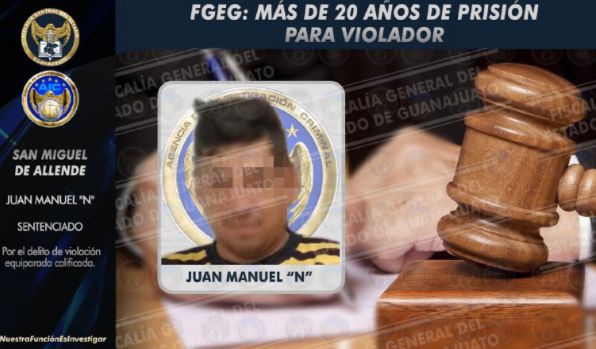 Juan Manuel «N» fue sentenciado a 29 años de prisión por el delito de violación equiparada calificada en San Miguel Allende.