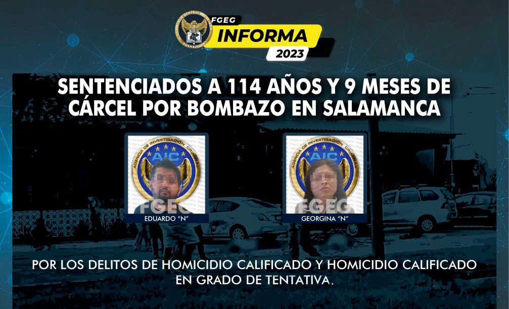 La Fiscalía de Guanajuato logró una condena de cárcel contra la pareja que hizo estallar un regalo bomba en el restaurante – bar Barra 16.04 de Salamanca.