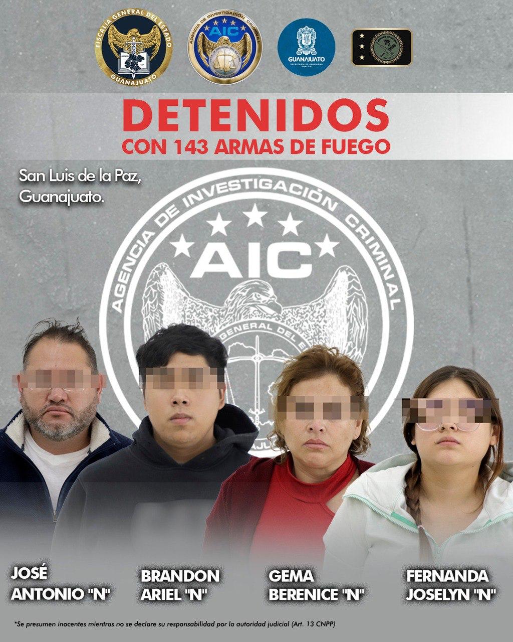 LA FISCALÍA DE GUANAJUATO REALIZÓ UN ASEGURAMIENTO SIN PRECEDENTES DE ARMAS, EN COORDINACIÓN CON LA SSPE Y LA SEDENA, EN SAN LUIS DE LA PAZ; HAY 4 DETENIDOS.